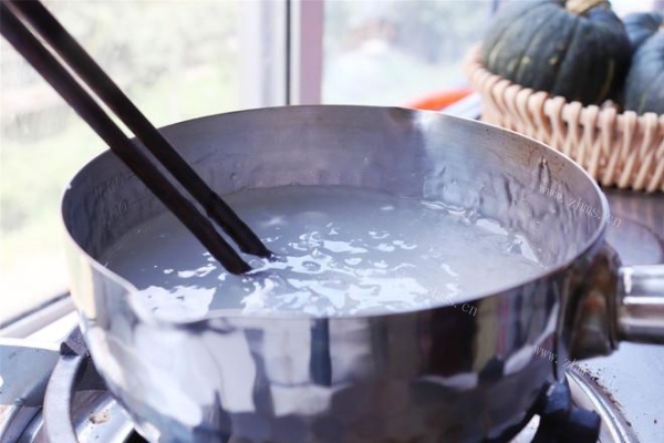 往锅中倒入 600g 水,大火煮开后转为小火。