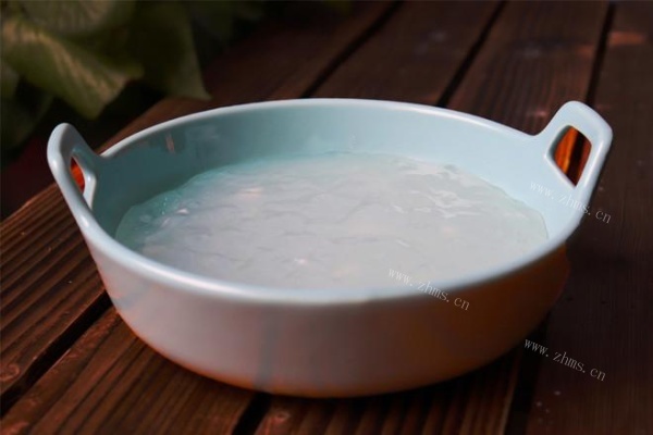 将煮好的淀粉倒入容器中冷藏 2-4 小时。