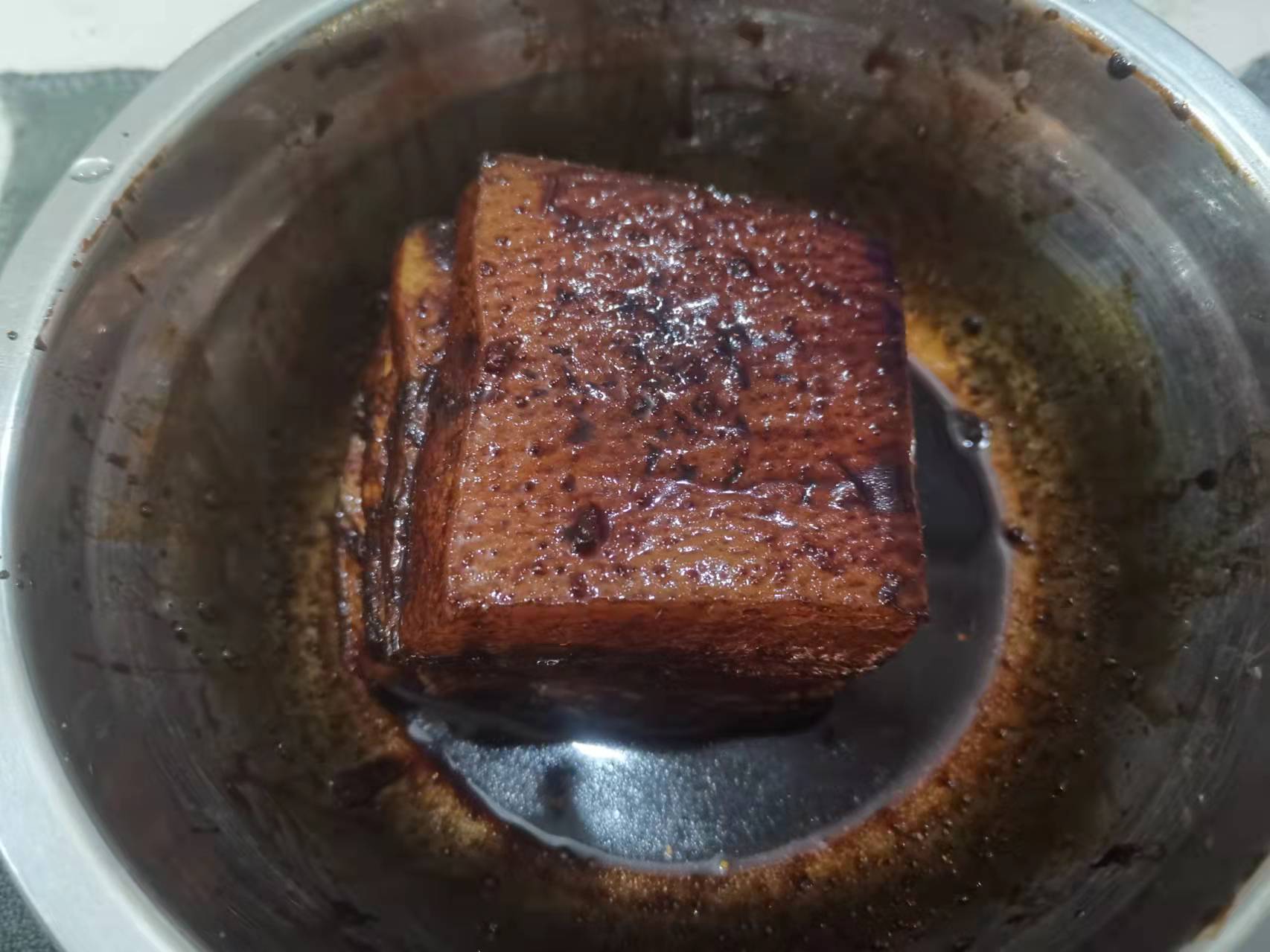 起锅烧油,加入五花肉,中火油炸直至两面金黄色(3-5 分钟)