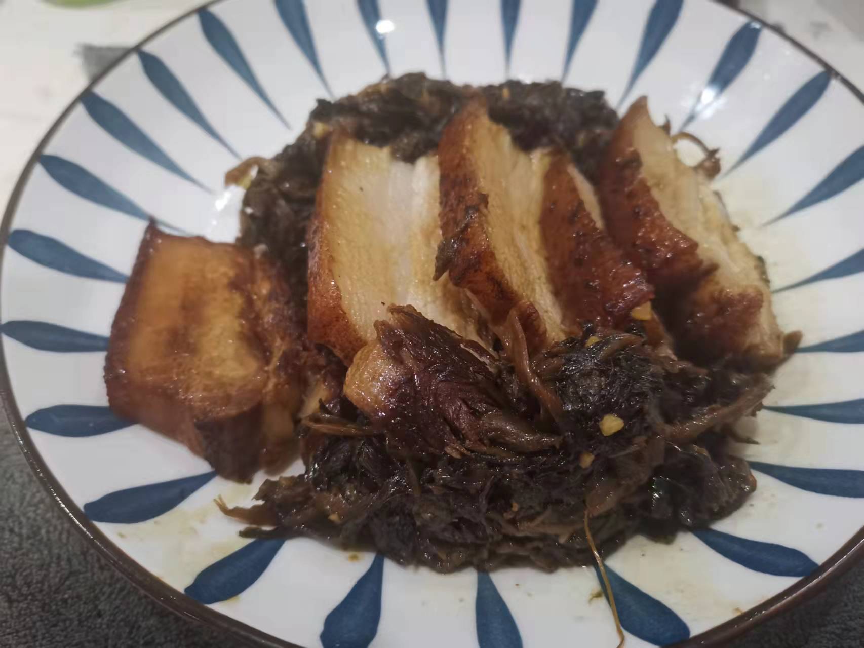 炒干梅干菜的作用是为了后续吸油(盲猜)
